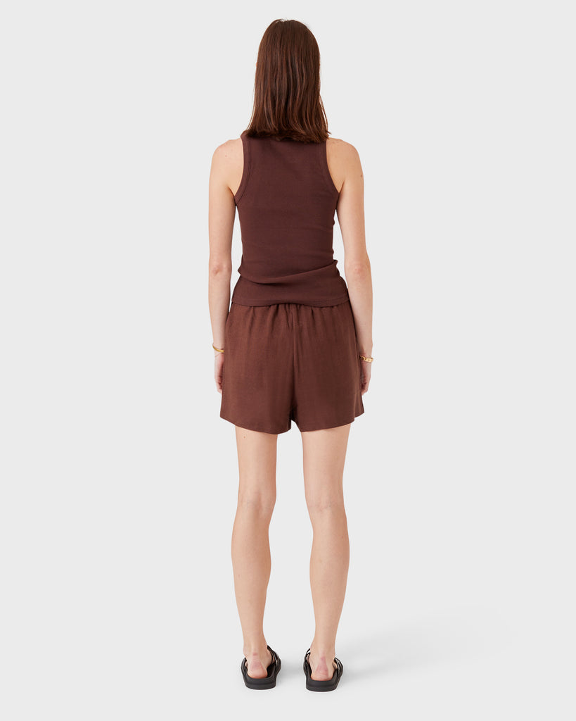 The Cools Club Friend Tank in Coffee is our contemporary tank, made from soft ribbed cotton and features a comfortable, slim fit. The mid length fit allows for wearing over the waist or tucked in and compliments our Aries/Solaris shirts and Atlas Short perfectly.